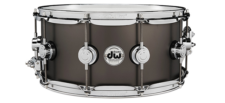 Benefiting from a thin industry-standard 1mm shell and featuring a striking satin finish, the Collector’s Series Satin Black Over Brass snare drum is a powerful